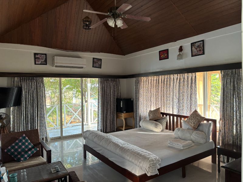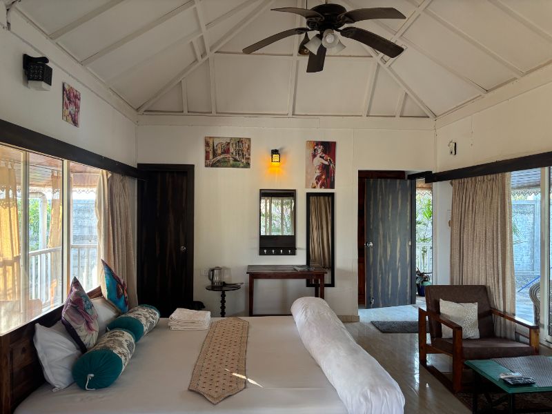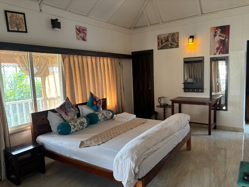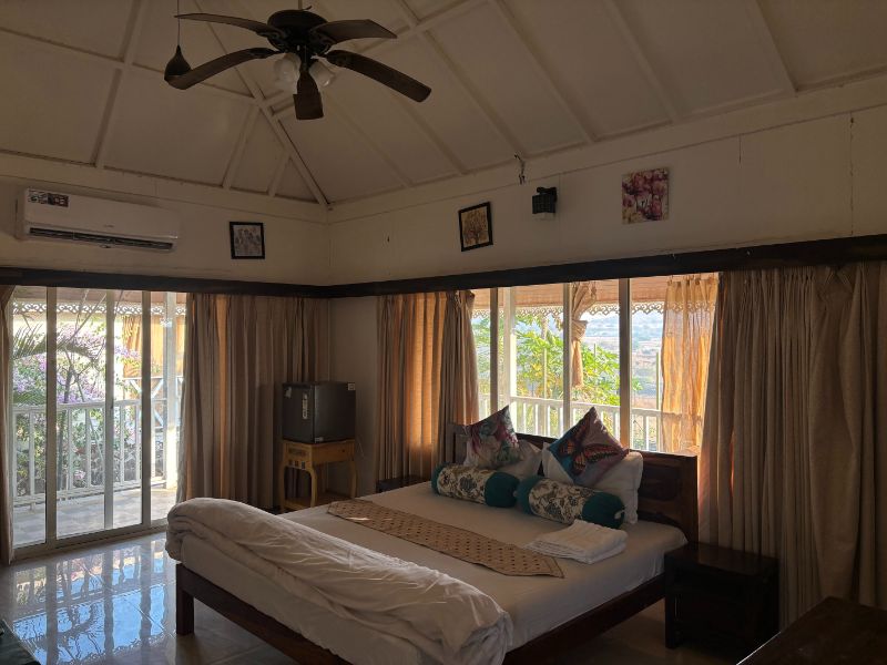 Our signature white villa featuring a classic tiled roof and a sweeping veranda. Inside, enjoy king-sized comfort and premium linens. Ideal for families.